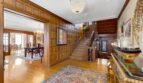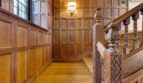 Un majestueux escalier en chêne sculpté traverse une cage d’escalier lambrissée, menant à un palier généreux et à plusieurs espaces extérieurs : terrasse au 2e étage, terrasse au 3e étage, et balcon au 4e étage — chacun offrant une vue imprenable sur la ville.